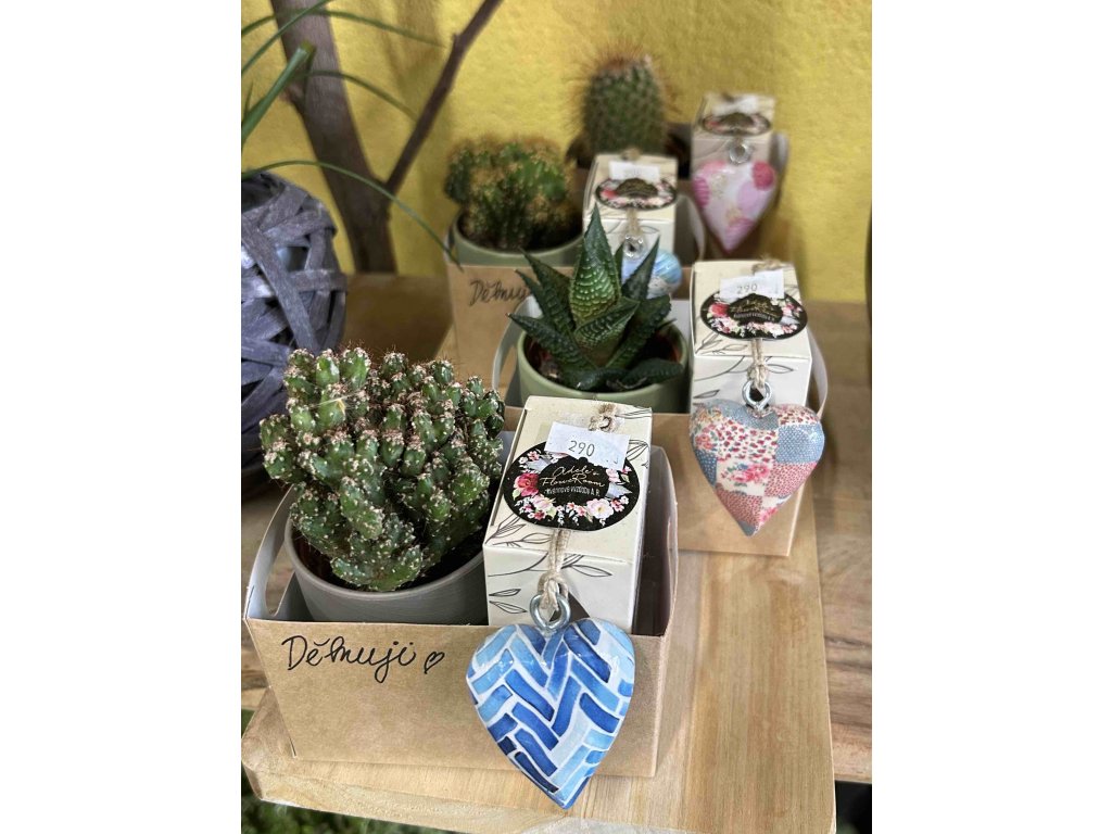 Dárek obsahuje - 1ks mix mini kaktusů + 1ks obal na kaktus + ks jílové mýdlo 140g mix + ks mini dárkové srdíčko mix