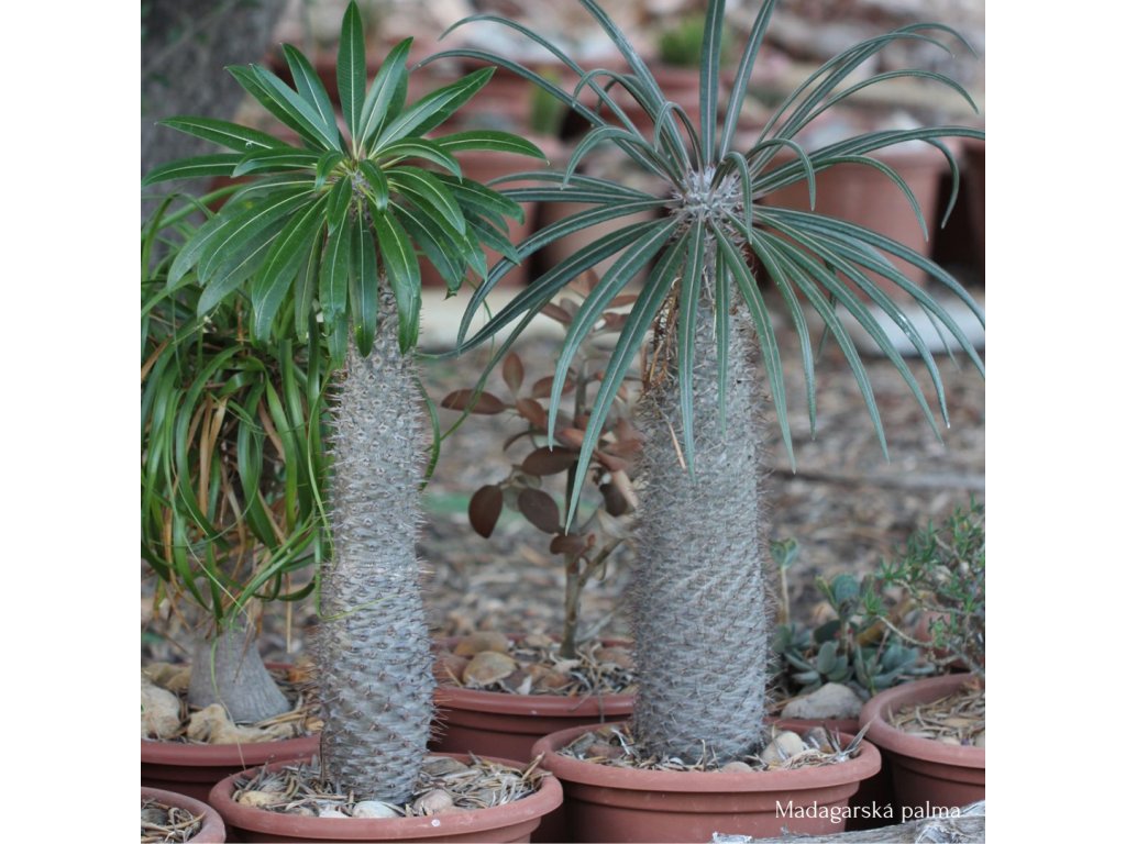 Sukulentní palma - Madagarská palma je pokojová rostlina, která miluje teplo a slunce. Dorůstá až 2m. Ideální pro milovníky zajímavých druhů sukulentů a kaktusů.