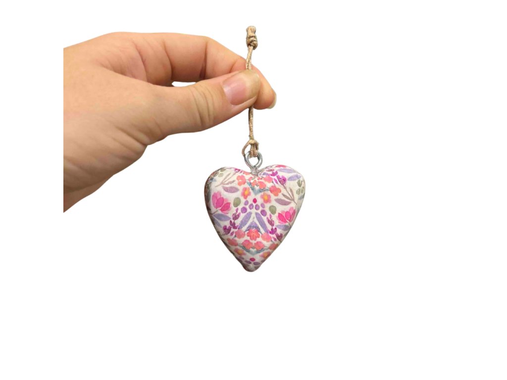 Tato srdce, ručně vyrobená v Indii z udržitelného mangového dřeva a zakončená zářivými smaltovanými vzory, přinášejí do každého prostoru jedinečný, vintage nádech. Srdíčka, jsou perfektní jako samostatná nástěnná dekorace, ozdoba do interiéru nebo jako doplněk k dárku.